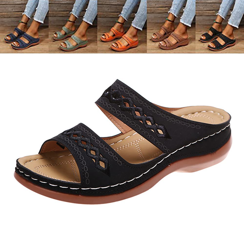 JYDQM Orthopedic Shoes for Women Arch Support Diabetic Walking Cross Sandals Black 7.5