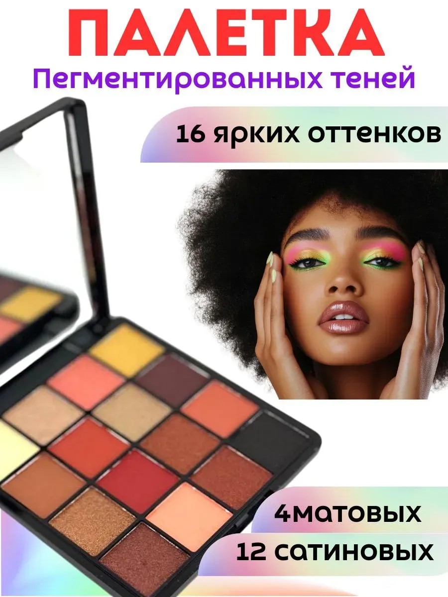 Introducing an eyeshadow palette that will become an essential tool in your makeup arsenal. This palette features 16 rich shades, allowing you to create both everyday and evening looks.