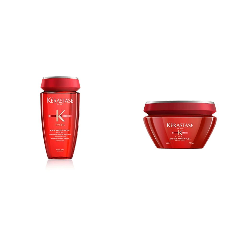 Apply to washed and towel-dried hair, from mid-lengths to ends. Leave on for 5 minutes for fine hair and 10 minutes for thick hair. Rinse while emulsifying, then style as usual. For a complete routine, cleanse your hair with the After-Sun Shampoo before applying the mask. It deeply hydrates and nourishes the hair fiber and protects it from external aggressors and the harmful effects of the sun's rays. The After-Sun Mask restores softness and shine to hair exposed to the sun and weakened by seawater, chlorine, and sand. Enriched with coconut water, vitamin E, and a UV filter, this intensive treatment revitalizes the hair fiber and deeply hydrates it while minimizing frizz. Apply to wet hair and massage into the scalp and lengths to create a lather. Rinse thoroughly with clean water, then shampoo a second time using the same method. Complete your routine with the After-Sun Mask to deeply nourish your hair. It nourishes and repairs the hair fiber, protecting it from the sun's UV rays, chlorine, sea salt, and sand. Hair is left shiny and silky smooth. The After-Sun Shampoo is designed for all hair types exposed to the sun. Enriched with coconut water, vitamin E, and a UV filter, it cleanses the hair and protects it from the harmful effects of the sun's rays, which can dry out and damage the hair fiber.Appliquer sur cheveux lavés et essorés, des longueurs jusqu'aux pointes. Laisser poser 5 minutes sur cheveux fins et 10 minutes sur cheveux épais. Rincer en émulsionnant, puis procéder au coiffage. Nettoyer les cheveux avec le Bain Après-Soleil avant d'appliquer le masque pour une routine complète. Il hydrate et nourrit la fibre capillaire en profondeur et la préserve des agressions extérieures et des méfaits des rayons du soleil. Le masque Après-Soleil redonne douceur et brillance aux cheveux exposés au soleil et fragilisés par l'eau de mer, le chlore et le sable. Enrichi en eau de coco, vitamine E et filtre UV, ce soin intensif revitalise la fibre et l'hydrate en profondeur tout en limitant l'apparition des frisottis. Appliquer sur cheveux mouillés et masser le cuir chevelu et les longueurs en faisant mousser. Rincer abondamment à l'eau claire, puis effectuer un second shampoing en procédant de la même manière. Compléter votre routine avec le masque Après-Soleil pour nourrir vos cheveux en profondeur. Il nourrit, répare la fibre et la protège des rayons UV du Soleil, du chlore, du sel de mer et du sable. Les cheveux sont brillants et retrouvent un toucher soyeux. Le Shampoing Bain Après-Soleil est conçu pour tous les types de cheveux exposés au soleil. Enrichi en eau de coco, en vitamine E et en filtre UV, il nettoie la chevelure et la protège des effets néfastes des rayons du soleil pouvant assécher et abîmer la fibre capillaire.KÉRASTASE - Routine Soleil Pour Tous Types de Cheveux - Hydrate Protège Des Rayons UV, Du Chlore, Du Sel Du Sable - Eau De Coco Vitamine E
