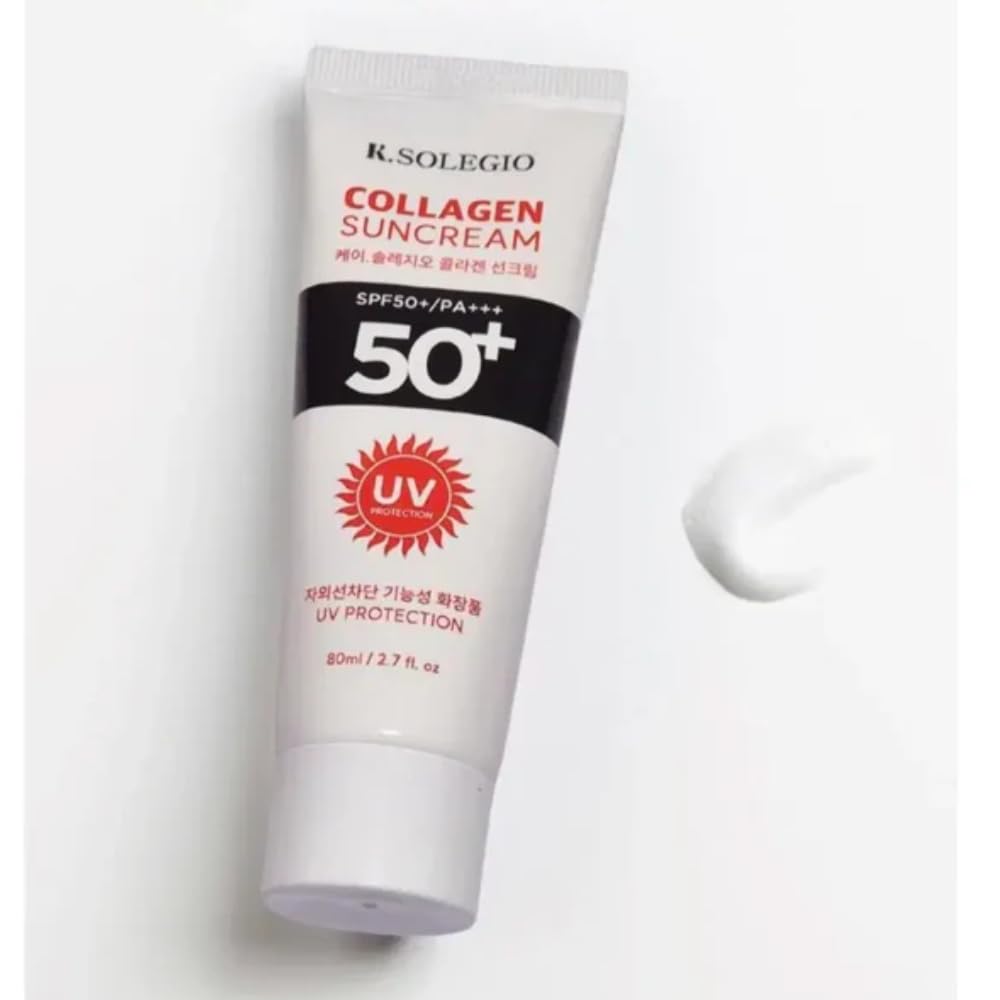 K. Solegio Collagen Sun Cream SPF 50+/PA+++ Broad Spectrum UV Protection with Collagen Lightweight Hydrating Sunscreen for Daily Use