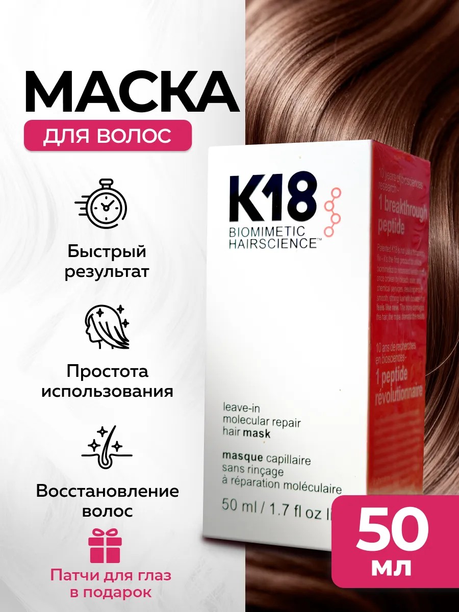 | Комплектация | к18 оригинальная восстанавливающая маска для волос - 1 шт.; патчи для глаз-1 шт. |