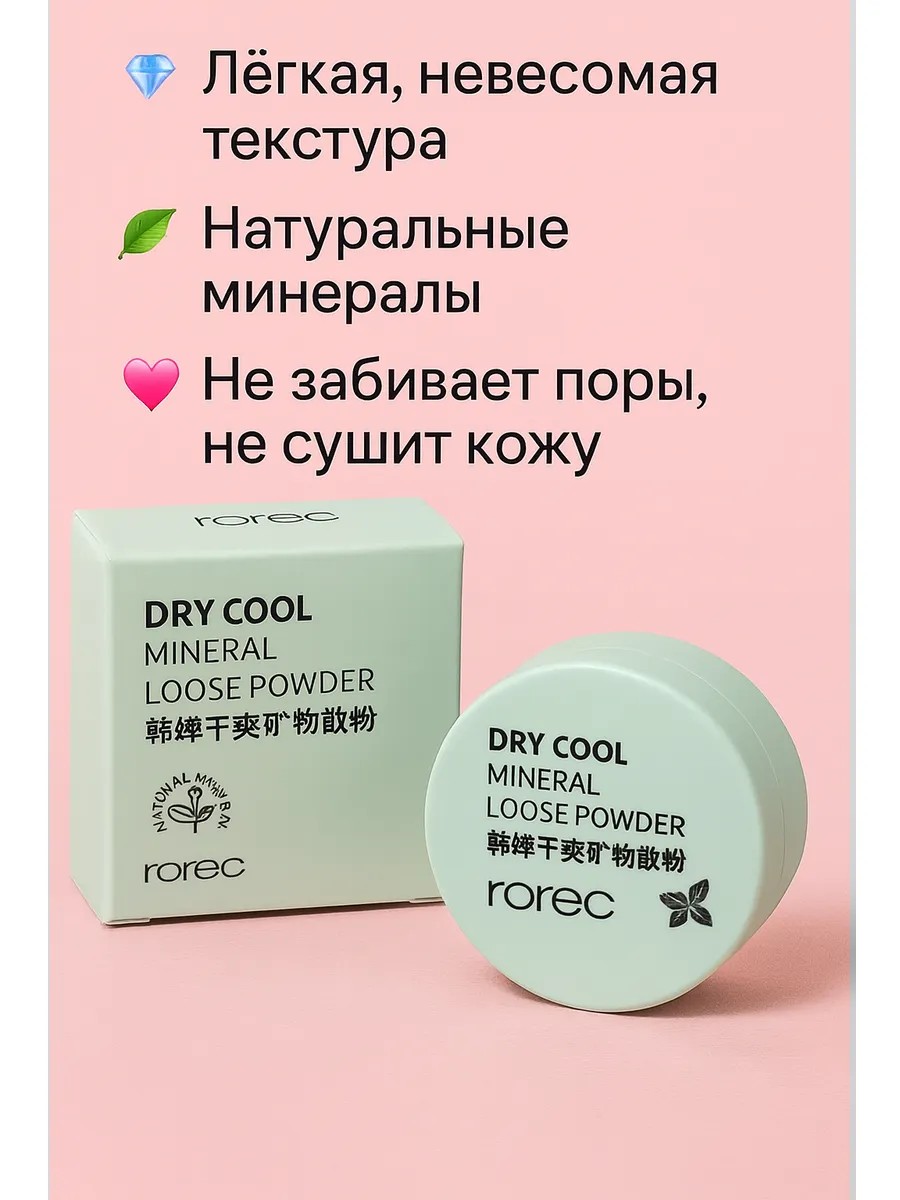 Минеральная рассыпчатая пудра Rorec Dry Cool — идеальное решение для безупречного макияжа и свежести кожи в течение всего дня. Лёгкая текстура ложится ровно, не утяжеляет и не забивает поры, обеспечивая матирующий эффект и контроль блеска. Подходит для всех типов кожи, включая чувствительную.