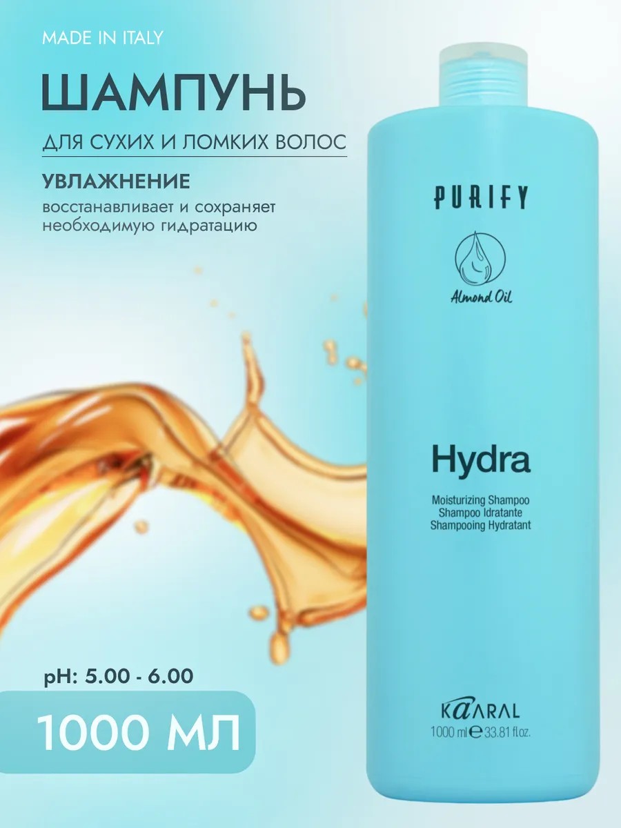 Увлажняющий шампунь в формате 1000мл популярной линейки Purify Hydra профессионального сегмента ухода за волосами. Состав шампуня обогащен маслом сладкого миндаля и экстрактом риса, они придают глубокое увлажнение и мягкость волосам, не утяжеляя их. Экстракт ромашки интенсивно восстанавливает, усиливает естественный оттенок волос, придает волосам мягкость и шелковистость, оставляя волосы увлажненными и легко расчесываемыми. Применение: Шампунь нанести на влажные волосы, массируя и ополаскивая. Повторить по необходимости. Без содержания парабена, силикона, минеральных масел, глютена. Для удобства извлечения шампуня применяйте фирменный дозатор - 5879185. Перед приобретением рекомендуем получить правильное назначение у специалиста.