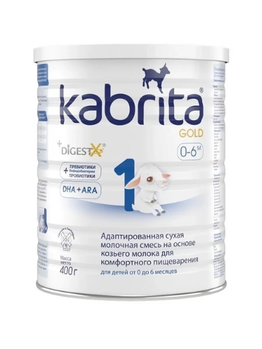 Kabrita 1 gold смесь молочная адаптированная сухая молочная смесь на основе козьего молока для детей 0 - 6 мес.Молочная смесь приготовлена из натурального голландского козьего молока с добавлением ценнейшей сыворотки. Козье молоко и продукты на его основе хорошо усваиваются и переносятся. Это способствует более комфортному пищеварению ребенка. Смеси Kabrita- сбалансированное, полноценное и бережное питание с рождения. DigestX- комплекс жиров с бета-пальмитатом, подобный жировому профилю грудного молока, способствует снижению вероятности запоров, лучшему энергообмену и усвоению кальция. Пребиотики и Пробиотики способствуют улучшению пищеварения и укреплению иммунитета. DHA (Омега-3) и ARA (Омега -6) - для правильного развития мозга и зрения. Нуклеотиды - для укрепления иммунитета. Перед применением рекомендуется проконсультироваться с врачом и ознакомьтся с инструкцией.