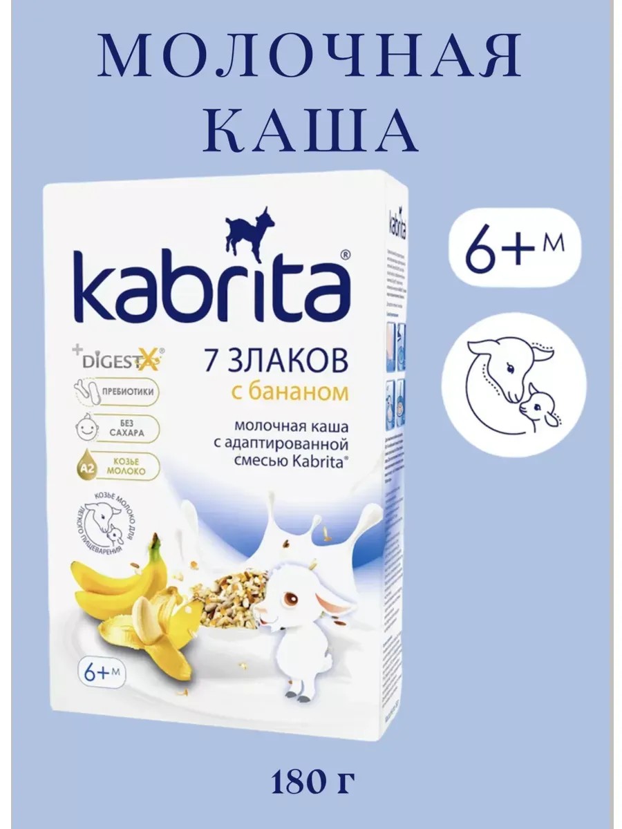 Нежная мультизлаковая каша Kabrita на основе адаптированной молочной смеси Kabrita с добавлением любимого фрукты всех малышей – спелого банана. Идеально подходит для сбалансированного питания малыша первого года жизни и расширения его вкусовых предпочтений. Сочетание питательных злаков с фруктами и смесью Kabrita из натурального козьего молока обеспечивает высокую пищевую ценность. Приятный сливочный вкус каш Kabrita достигается исключительно за счет натурального молочного сахара – лактозы и фруктов. Приготовлена без добавления подсластителей.