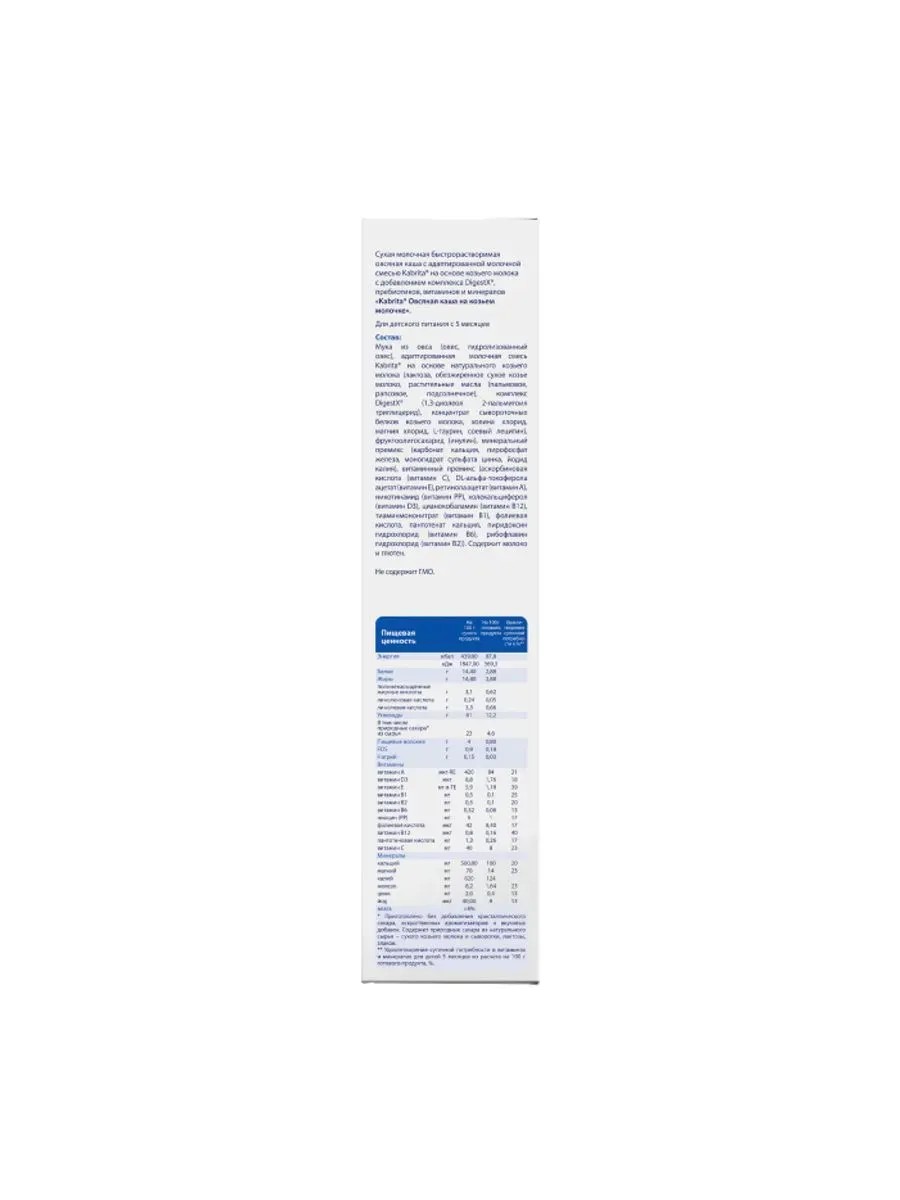 kabrita каша овсяная на козьем молочке 180,0. способствует щадящему переходу к прикорму и естественному облегчению пищеварения в качестве прикорма для детей старше 5 месяцев с адаптированной молочной смесью kabrita на основе козьего молока, с добавлением комплекса digestх , пребиотиков, витаминов и минералов