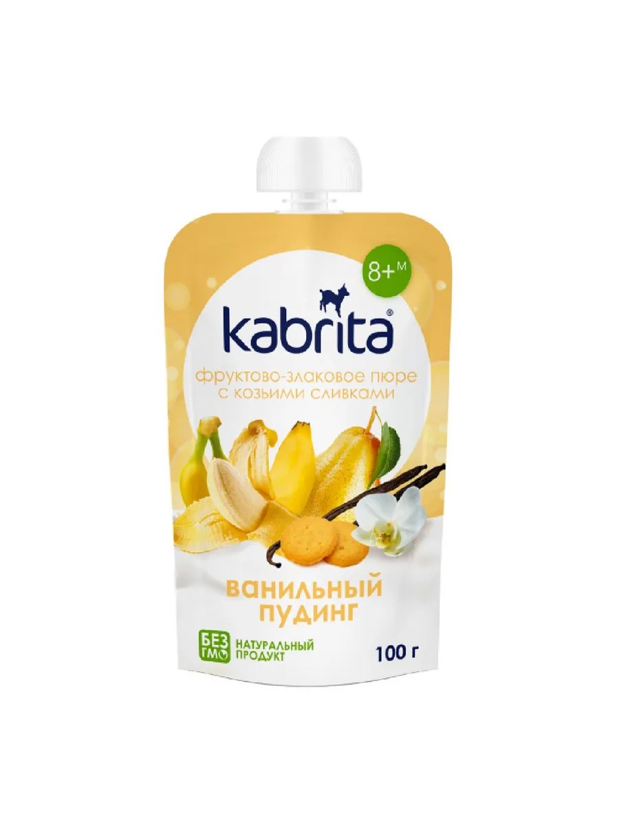 KABRITA ПЮРЕ ФРУКТОВО-ЗЛАКОВОЕ С КОЗЬИМИ СЛИВКАМИ ВАНИЛЬНЫЙ ПУДИНГ - удобно брать с собой.