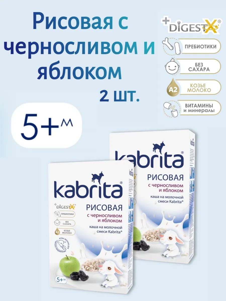 Составрисовая мука; гидролизованная рисовая мука; адаптированная молочная смесь Kabrita; фруктовые хлопья; растительные масла; комплекс DigestX; минералы; сухое обезжиренное козье молоко; витамины