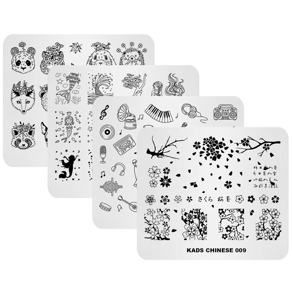 Kads 4PCs stamp plates set animal plum flower mermaid guittar panda pattern fashion manicure template nail art picture stamp nail design tools 5