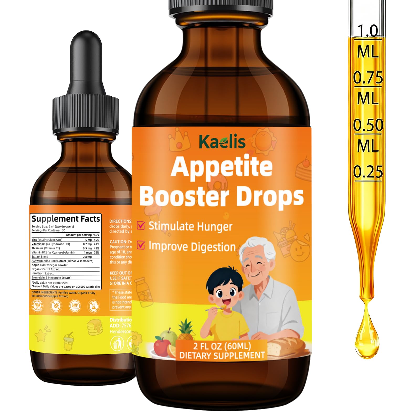 Kaelis Appetite Booster Liquid Drops: Digestive Bromelain Blend Supplememnt with Zinc Vitamins for Adults & Kids Picky Eaters to Stimulate Hunger Support Gut Health Encourage Eating Growth
