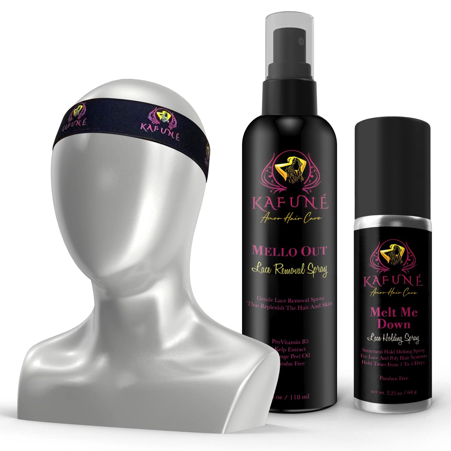Innovative and Efficient - Kafune Amor Hair Care Elastic Hair-Line Wrap Bands is an innovative solution for your hair bonding needs. This lace wig glue wrap is known for its exceptional grip, ensuring lace stays in place all day. Making it ideal for those with active lifestyles. Lace wrap band is also efficient, as a small amount of installed products goes a long way. Whether you're using it for lace wigs, or front lace wigs, this wig glue and wig spray wrap offers efficiency and reliability. Convenient and Practical - The Kafune Amor Hair Care Mello Out Revoval Spray for Lace Holding Spray comes in a compact and easy-to-use spray bottle, making it a practical choice for quick removal and on-the-go applications. Its Our non-toxic, lightweight formula is infused with skin-friendly ingredients like aloe and vitamin C, so you can enhance your skin’s natural glow while effortlessly removing and hydrating your hair unit. this wig glueless hair care kit is a must. Superior Quality and Value - The Kafune Amor Hair Care Melt Me Down Lace Holding Spray is made from high-quality ingredients that are safe for your hair and skin. It offers superior value with its long-lasting formula, allowing you to use less product for each application. Whether you're using it for a lace front wig, a frontal, or eyelash extensions, this wig glue ensures a secure hold that lasts all day. Its glueless formula also makes it an excellent choice for all-day errands. Versatile and Reliable - The Kafune Amor Hair Care Melt Me Down Lace Holding Spray is not only perfect for securing lace wigs but also for eyelash extensions and other hair bonding needs. It is compatible with all types of lace and poly hair systems, making it a versatile choice for both personal and professional use. With its strong and waterproof hold, you can confidently go about your day knowing your hair is securely in place. Easy to Use and Remove - The Kafune Amor Hair Care Melt Me Down Lace Holding Spray is easy to apply and dries quickly, providing a strong hold for your wig. It is also easy to remove with any lace glue remover, making it a hassle-free choice for both beginners and professionals. Its clear formula leaves no residue, ensuring a flawless finish for your lace wig.