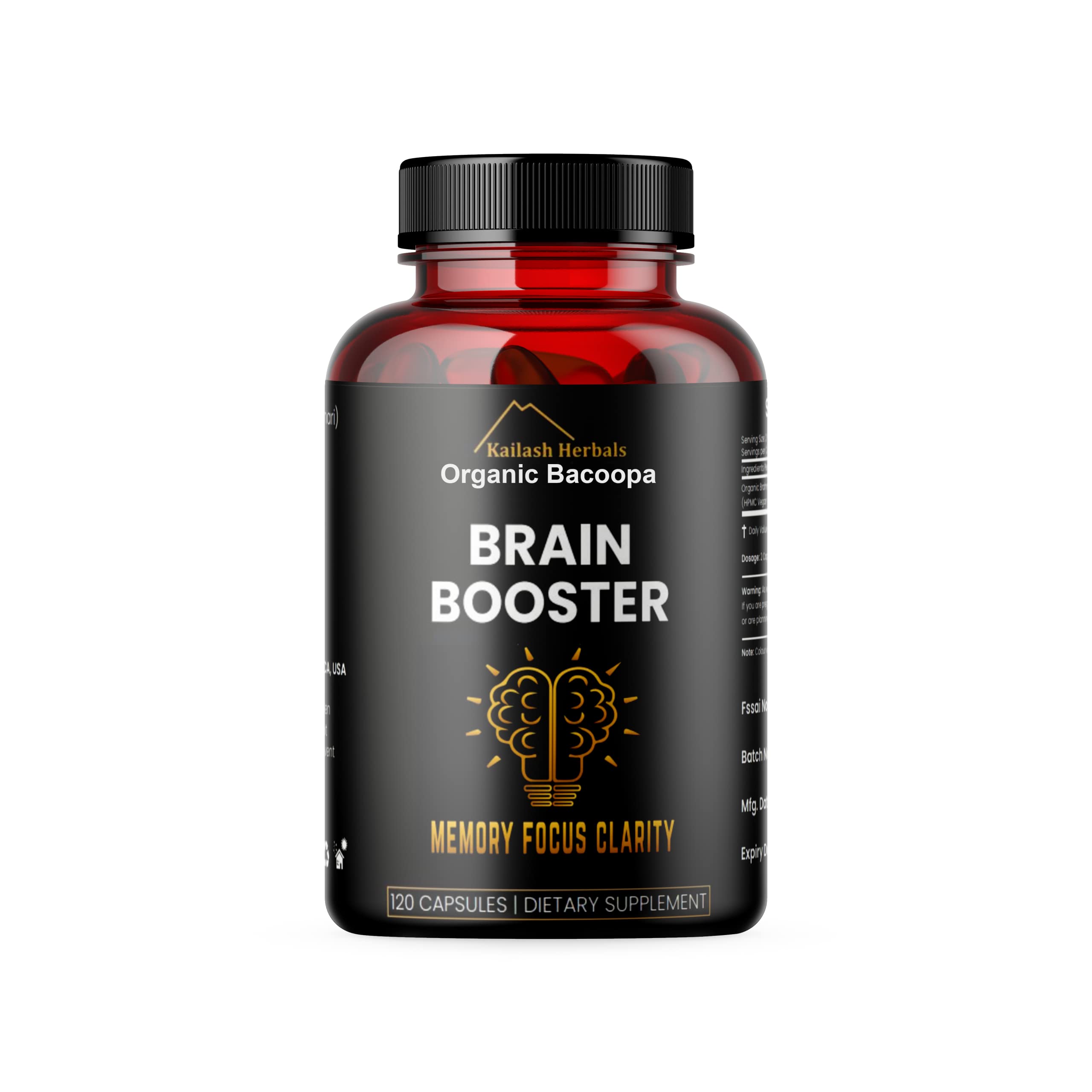Kailash Herbals Bacopa, Organic Brain Booster, Nootropic Brain Supplement, Bacopa Monnieri/Brahmi, for Mental Sharpness, Focus, Memory, and Cognitive Wellness, 120 Capsules 500mg, 2 Month Supply