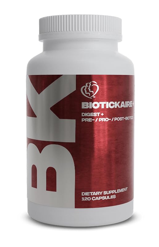BROAD SPECTRUM DIGESTIVE ENZYMES – Our advanced multi-enzyme blend is carefully formulated to support the natural breakdown of proteins, fats, and carbohydrates, promoting digestive comfort and seamlessly complementing your daily wellness routine. POSTBIOTIC SUPPORT – Our complete 4-in-1 blend combines postbiotics, prebiotics, and probiotics that work synergistically with beneficial bacteria to support your digestive routine and help maintain a healthy, balanced digestive system. INNOVATIVE PREBIOTIC SUPPORT – BioticKaire features carefully chosen prebiotics that nourish beneficial bacteria, help maintain a balanced digestive environment, and complement your daily wellness routine while also supporting a healthy metabolism. ADVANCED PROBIOTIC STRAINS – This enzyme-rich formula includes targeted women's probiotics to promote digestive balance and diversity and enhanced with zinc carnosine for gut lining support, it also supports GLP-1 activity, contributes to pancreatic wellness, and helps ease discomfort without relying on harsh laxatives. COMPLETE 4-IN-1 FORMULA – BioticKaire features a thoughtfully crafted and science-backed blend of probiotics, prebiotics, postbiotics, and digestive enzymes all working synergistically to promote gut health, enhance nutrient absorption, and support overall digestive balance.