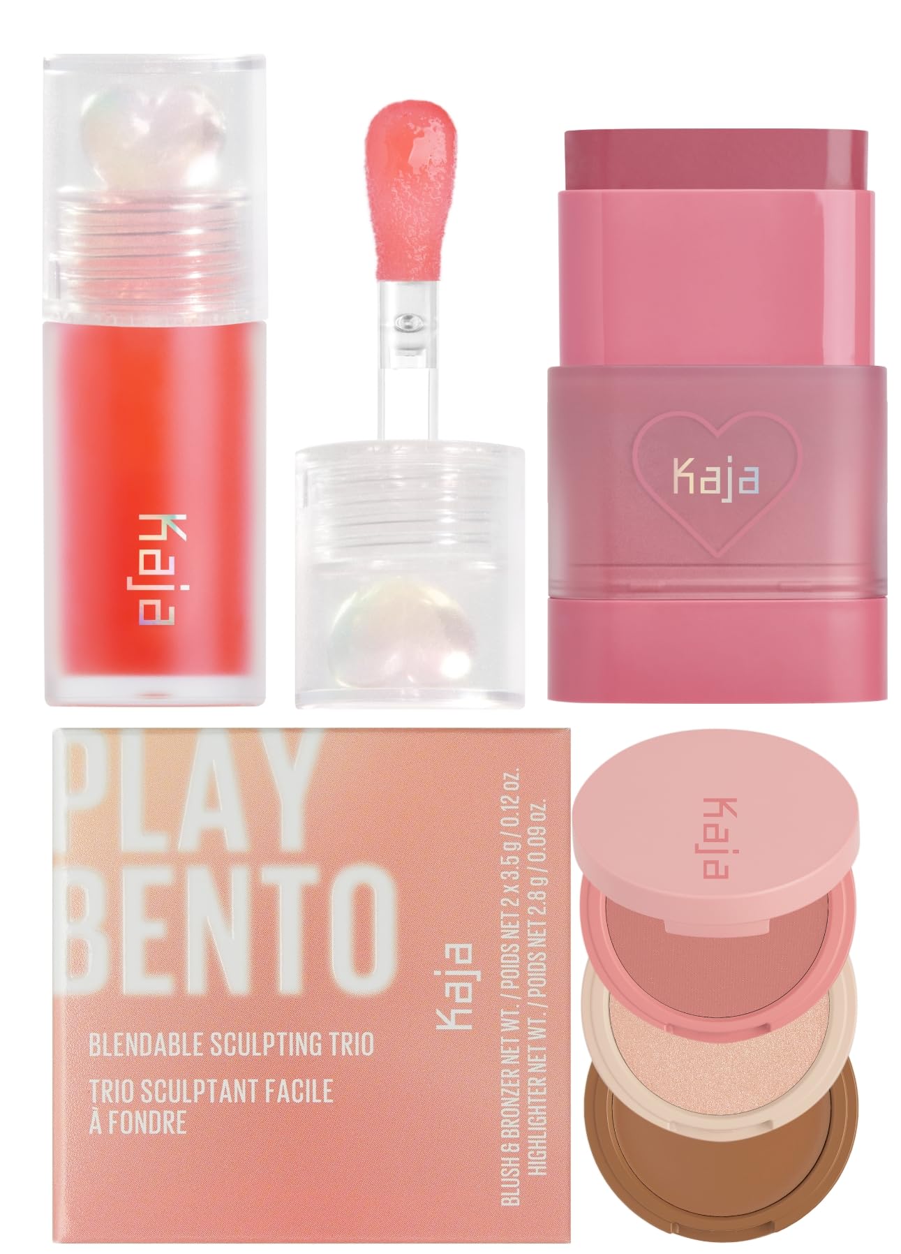 THREE-IN-ONE PALETTE: This trio comes with a blush, bronzer and highlighter in a bite-sized palette. Available in three different shades and is suitable for every skin color. DEWY GLASS SKIN BLUSH: Effortlessly achieve a natural glow with our hydrating balm multi-stick, enriched with 45 moisturizing oil for a radiant finish and long lasting colors!. FEATHERWEIGHT COMFORT: Our lightweight glossy lip oil is designed to provide a comfortable and non-greasy feel on your lips. Suitable for daily use, both day and night. INSTANT GLOW: Build nourishing, comfortable pouts with juicy glassy finishes with Kaja's Juicy Glass Lip Oil. Each shade comes in 4mL (0.13 fl. oz) bottle. KAJA KAH-JAH : Kaja is K-beauty for everyone. From adorable packaging on the outside to imaginative formulas on the inside, we create made-to-play beauty packed with Korean innovation for all skin types and skin tones.