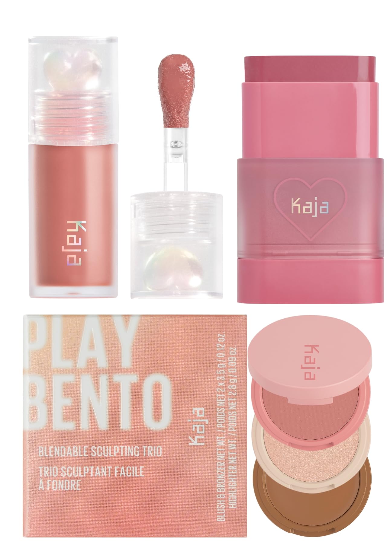 THREE-IN-ONE PALETTE: This trio comes with a blush, bronzer and highlighter in a bite-sized palette. Available in three different shades and is suitable for every skin color. DEWY GLASS SKIN BLUSH: Effortlessly achieve a natural glow with our hydrating balm multi-stick, enriched with 45 moisturizing oil for a radiant finish and long lasting colors!. FEATHERWEIGHT COMFORT: Our lightweight glossy lip oil is designed to provide a comfortable and non-greasy feel on your lips. Suitable for daily use, both day and night. INSTANT GLOW: Build nourishing, comfortable pouts with juicy glassy finishes with Kaja's Juicy Glass Lip Oil. Each shade comes in 4mL (0.13 fl. oz) bottle. KAJA KAH-JAH : Kaja is K-beauty for everyone. From adorable packaging on the outside to imaginative formulas on the inside, we create made-to-play beauty packed with Korean innovation for all skin types and skin tones.