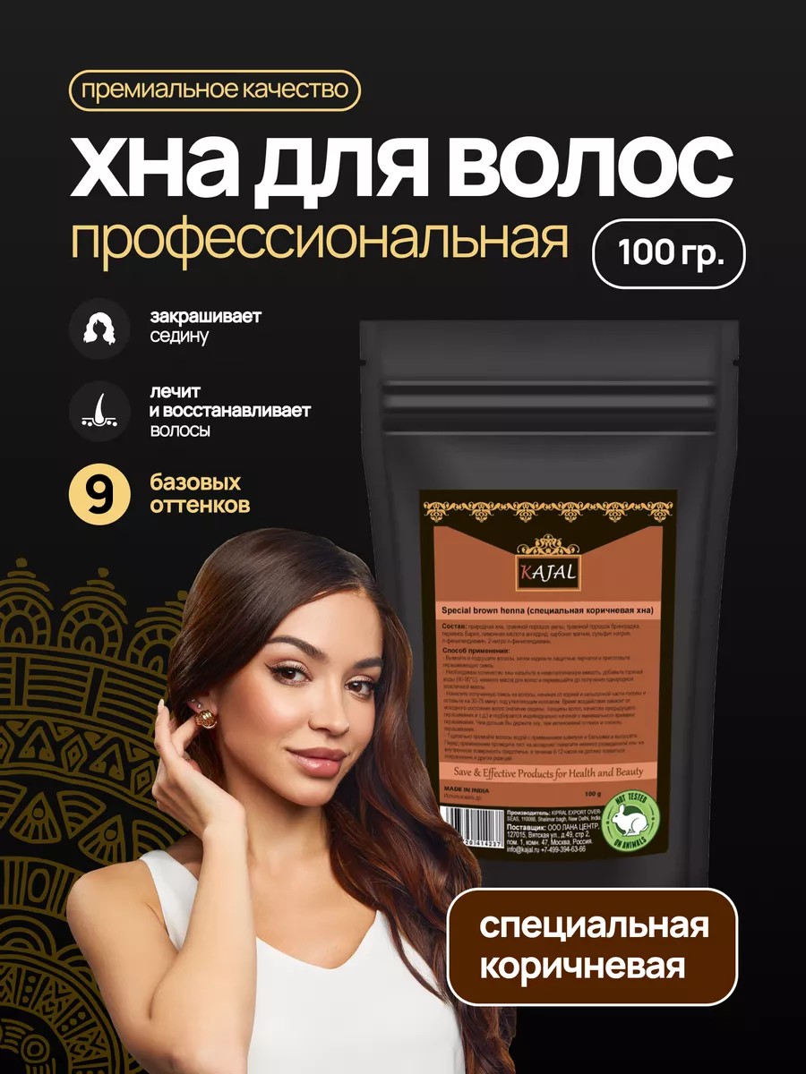 Kajal Профессиональная хна для окрашивания волос коричневая