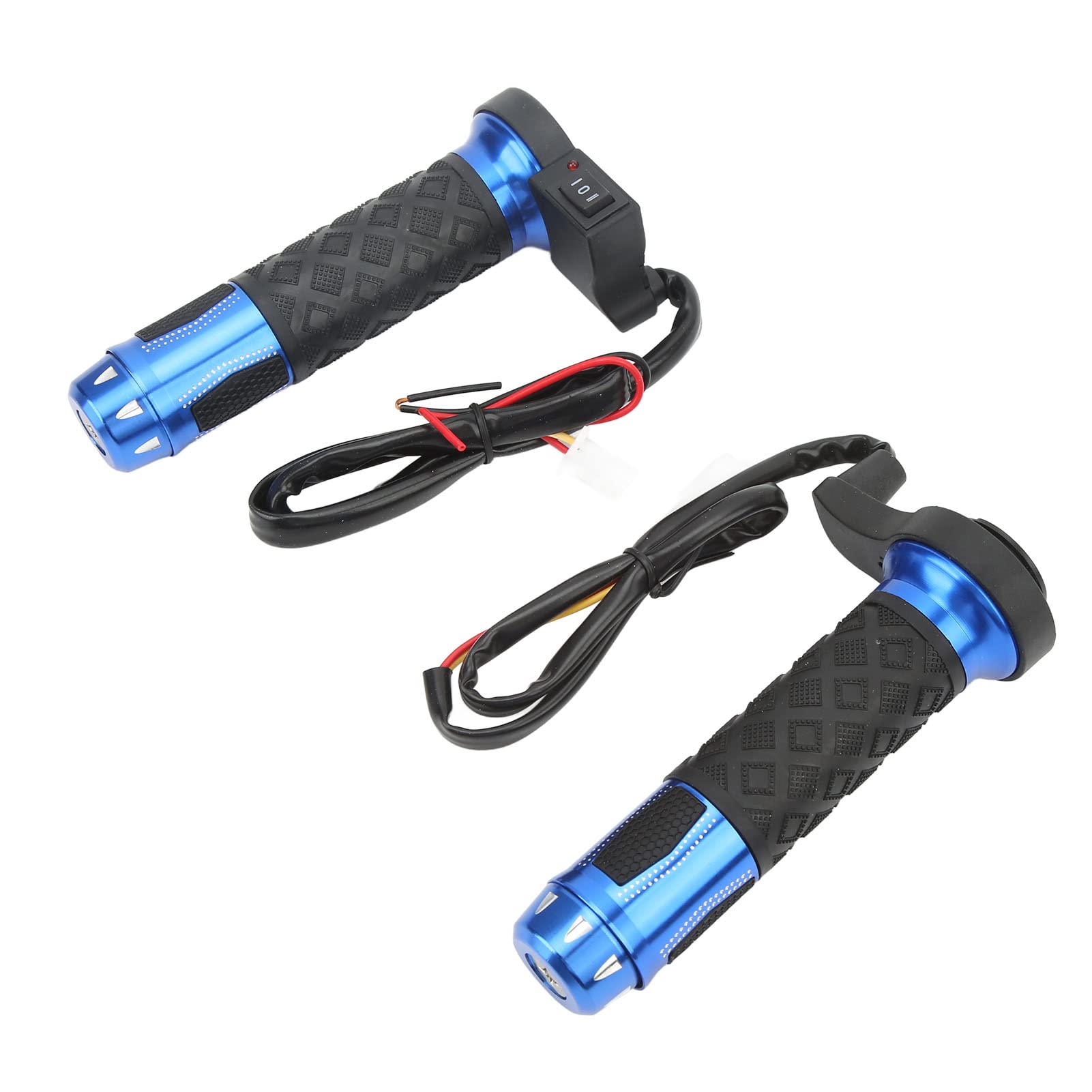 Function: 1. 50-70 ? adjustable heating: The handles with head are equipped with an independent three-speed switch.The temperature of 50-70 ? can be set as desired. 2. Durable and flexible: the electrical heating handle has very good wear resistance, high flexibility and resistance to low temperatures.You don't have to worry about cold hands even in cold weather. 3. Waterproof and dustproof: The electrical heating handle has a considerate waterproof and dustproof design that can make our electrical heating handle more durable and durable. 4. The main function: The temperature of this electrical hot handle is adjustable so that you can find the right temperature while driving, whereby the advanced electronic thermostat system does not use electricity. 5. Equipment: The heated handlebar is suitable for most motorcycles or ATVs with a handlebar with 22 mm (7/8 inch) diameter.They bring warmth into their winter trips. Use: Connect the left and right interface.Connect the black cable to the minus pole and the red cable to the plus pole. Specification: Article type: Heated handle Material: aluminum alloy Weight: approx. 376g/13.26oz Colour blue Input voltage: DC12V Suitable handlebar diameter: 2.2cm/0.87in Package list: 2 x heated handle 1 x tie 1 x accessories