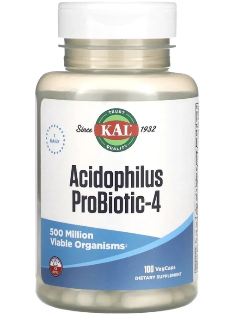 . KAL Acidophilus ProBiotic-4 предназначен для обеспечения питательной поддержки для создания и поддержания благоприятной кишечной флоры. Четыре штамма пробиотиков находятся в лиофилизированном состоянии. Каждая капсула содержит более 500 миллионов жизнеспособных микроорганизмов.