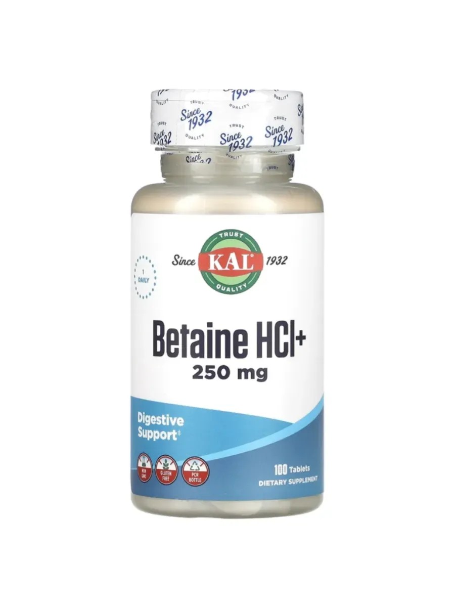 Бетаин 250 mg пепсин для пищеварения от KAL представляет собой комплексную пищевую добавку, разработанную для поддержки здоровья пищеварительной системы. Эта добавка содержит антиоксидант бетаин, который способствует нормализации функций печени и поддержанию общего состояния здоровья. Добавка не содержит ГМО, ароматизаторов и глютена, что делает её идеальным выбором для людей с определёнными пищевыми ограничениями. В состав добавки входят 250 мг бетаина из 328 г гидрохлорида бетаина, 32 мг кальция в виде карбоната кальция и 130 мг пепсина, что способствует улучшению процесса пищеварения. Этот продукт предназначен для улучшения пищеварительной функции и поддержания здоровья желудочно-кишечного тракта.
