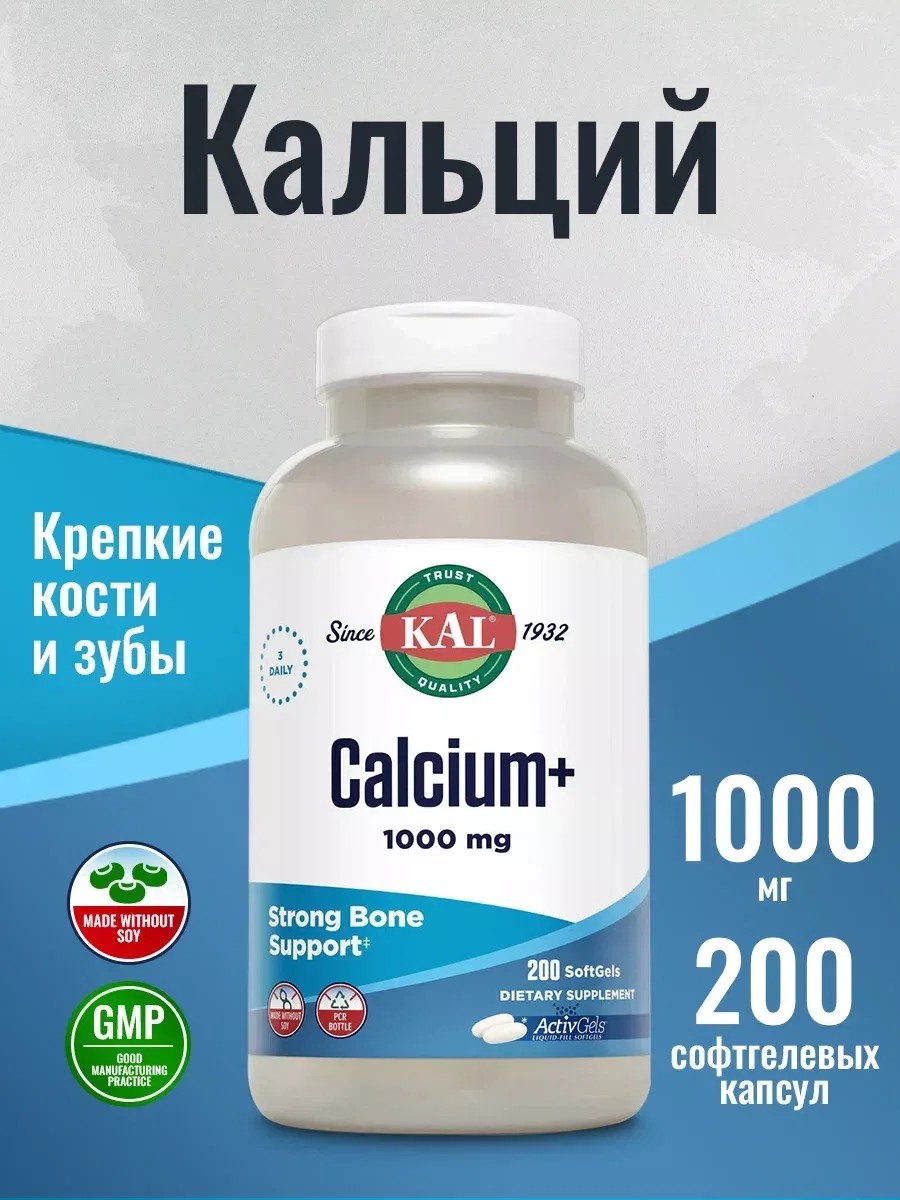| Комплектация | Кальций,Kal Calcium+ ActivGels 1000мг 200 капсул - 1 банка |