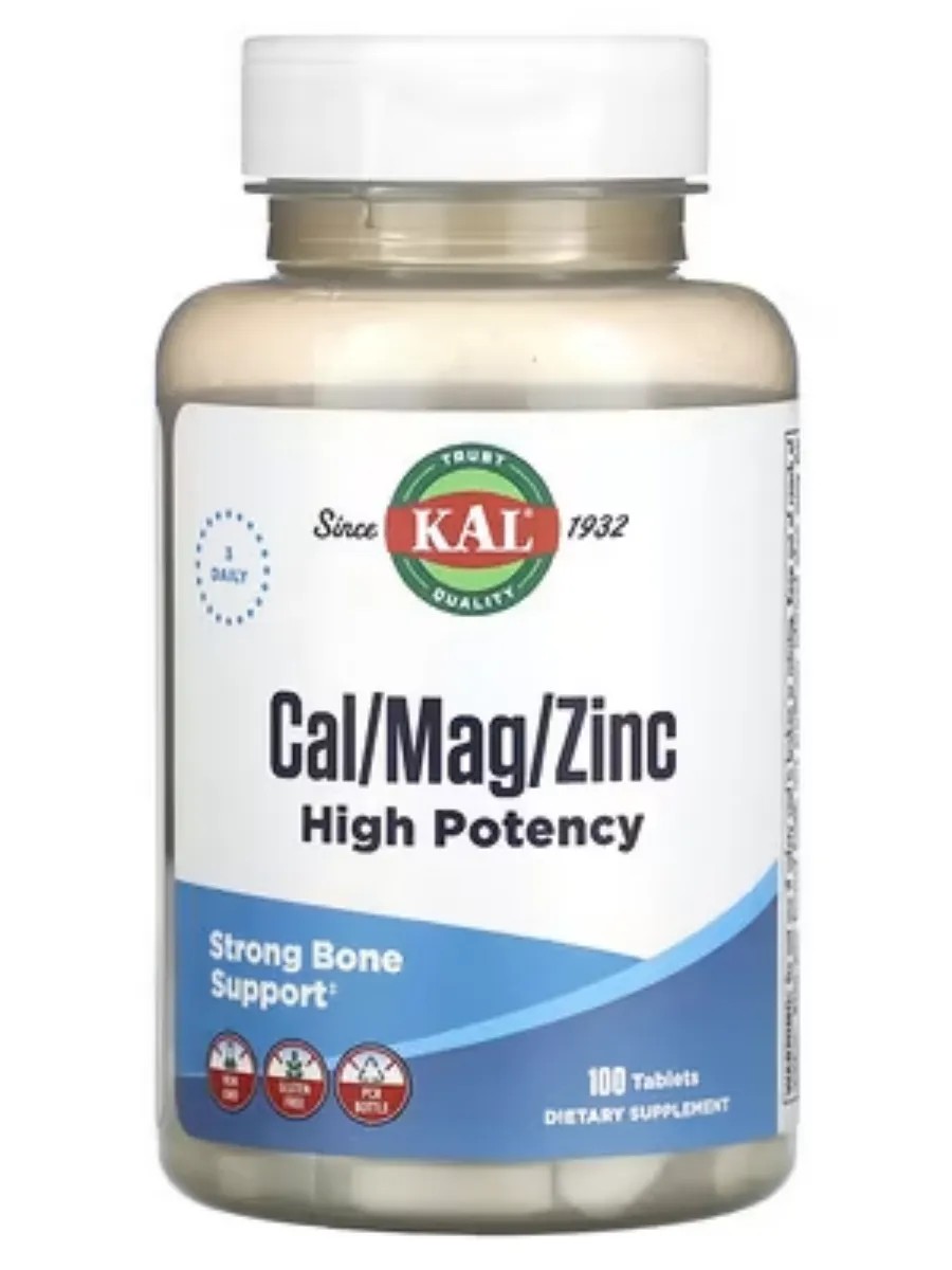 KAL Cal / Mag / Zinc содержит 3 незаменимых минерала. Кальций обеспечивает питательную поддержку здоровья костей и зубов. Вегетарианское средство.