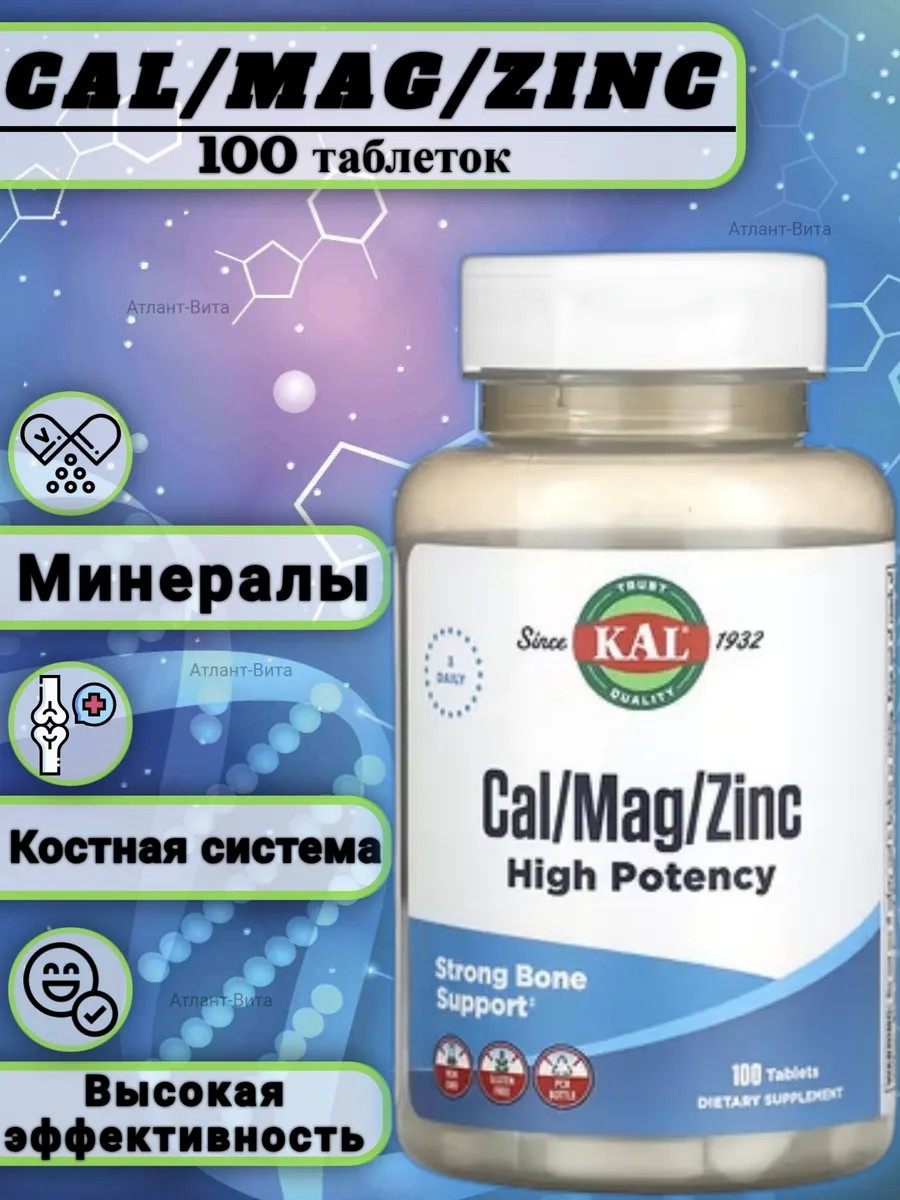 KAL Calcium Magnesium Zinc, Кальций, Магний, Цинк, 100 таб