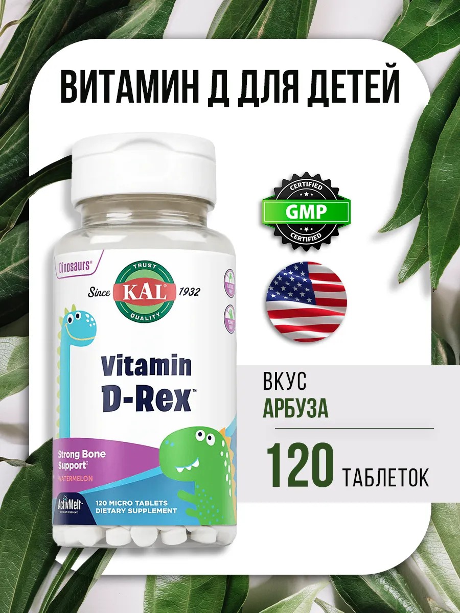 Комментарий. Микротаблетки с витамином D KAL Dinosaurs Vitamin D-Rex ActivMelt быстро тают во рту и оптимально усваиваются в организме. Таблетка быстро растворяется и имеет изумительный вкус арбуза, она станет настоящим лакомством для детей! Добавка с витамином D Vitamin D-Rex ActivMelt — это интересный способ обеспечить детей витамином D, необходимым в их ежедневном рационе.
