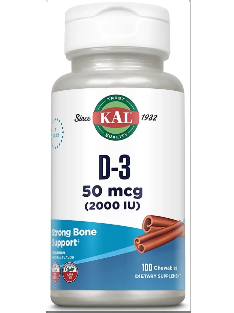 Additional Ingredients: KAL D3 chewable tablets contain natural flavors and sweeteners, making them tasty and easy to take for both children and adults.