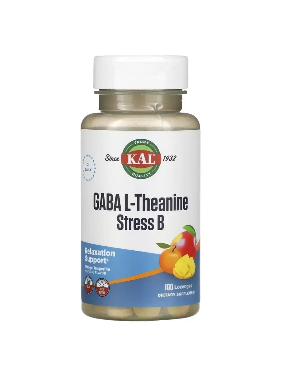 KAL GABA, L-Theanine, GABA L-Theanine Stress B 100 Chewable Tablets is an effective dietary supplement designed to support stress management and improve overall psycho-emotional well-being. This product combines two powerful ingredients: GABA (gamma-aminobutyric acid) and L-theanine, which are known for their relaxing and calming properties.