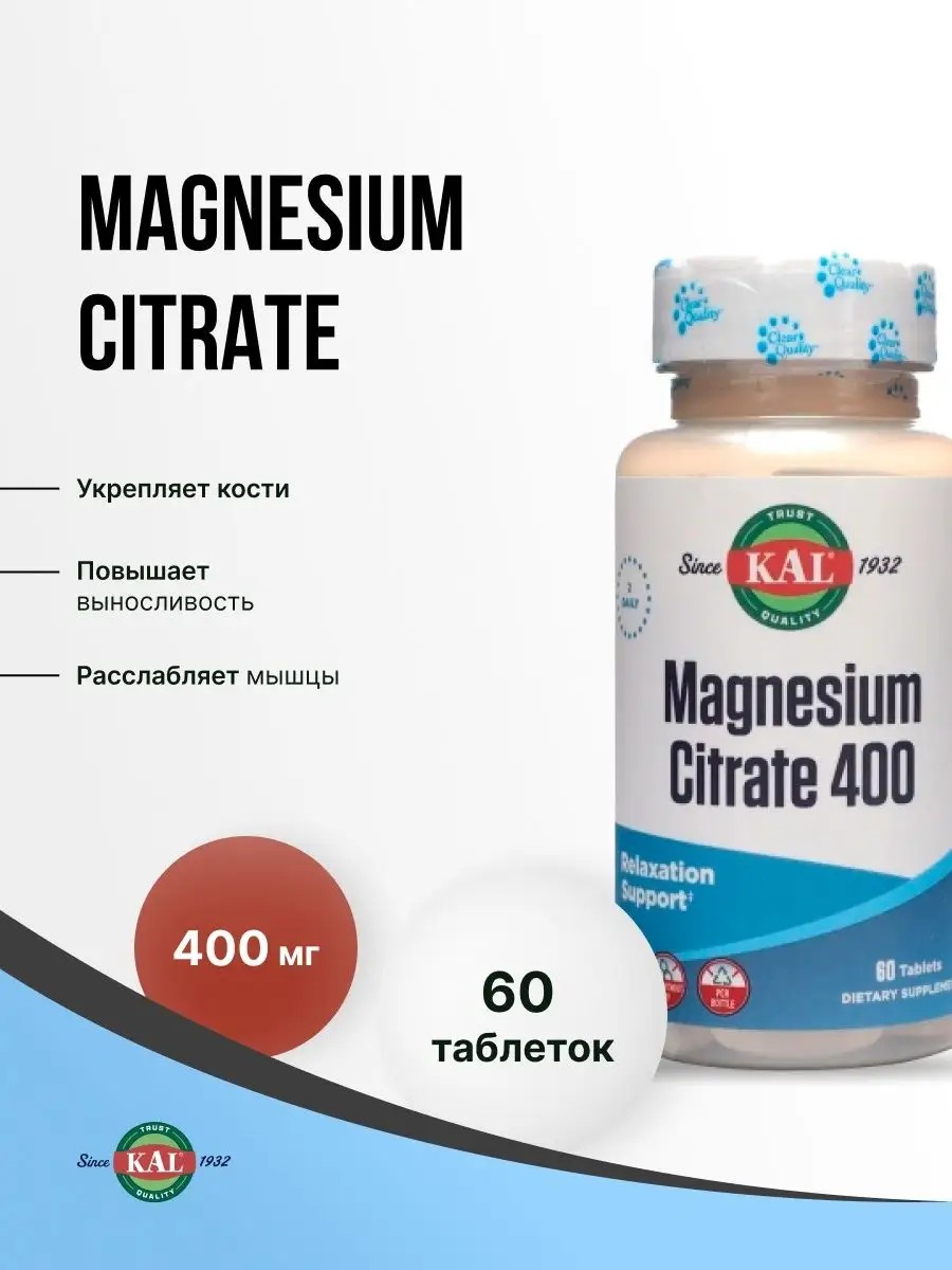 Цитрат магния Кал 2 таблетки в день являются вегетарианскими. Магний обеспечивает питательную поддержку для нормальной, здоровой функции мышц, здорового уровня энергии и расслабления. KAL гарантирует, что в этот продукт не было добавлено никаких ингредиентов, кроме перечисленных на этой этикетке.