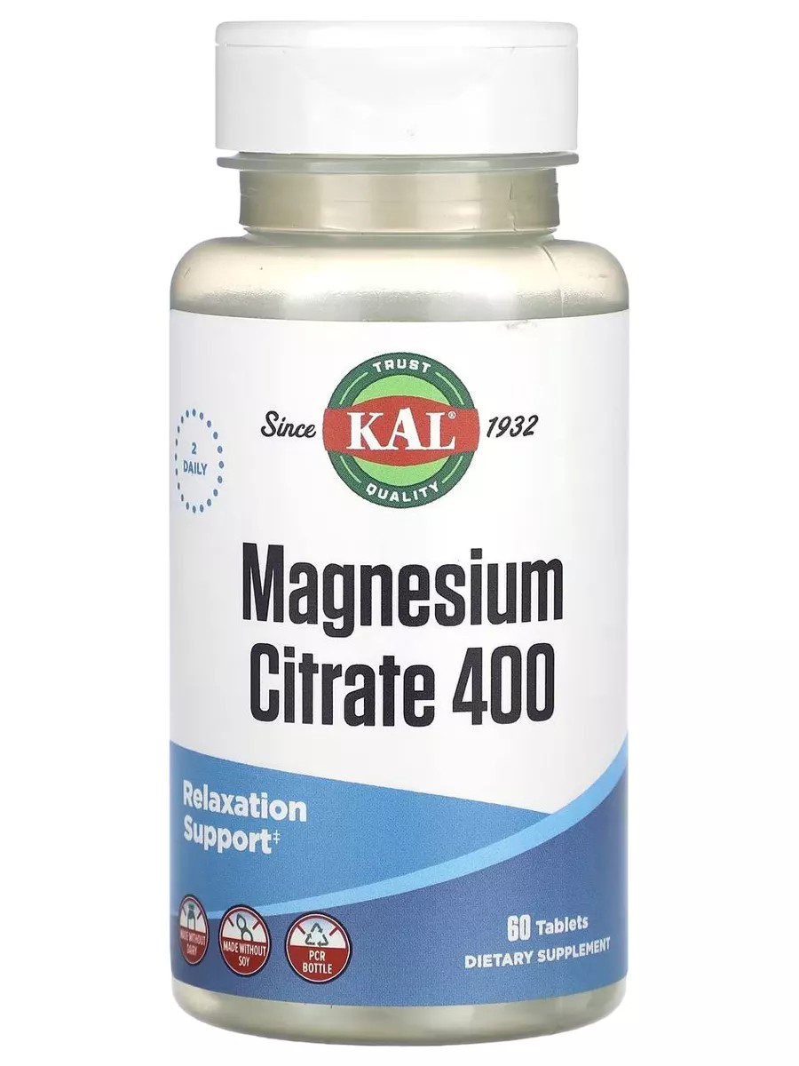 Magnesium Citrate 400 mg is the ideal supplement for anyone who cares about their health and leads an active lifestyle. Each package contains 60 high-quality tablets from KAL, providing a convenient and effective way to maintain optimal magnesium levels in the body. This essential mineral plays a key role in over 300 biochemical reactions, including muscle function, neuromuscular transmission, energy production, and protein synthesis.