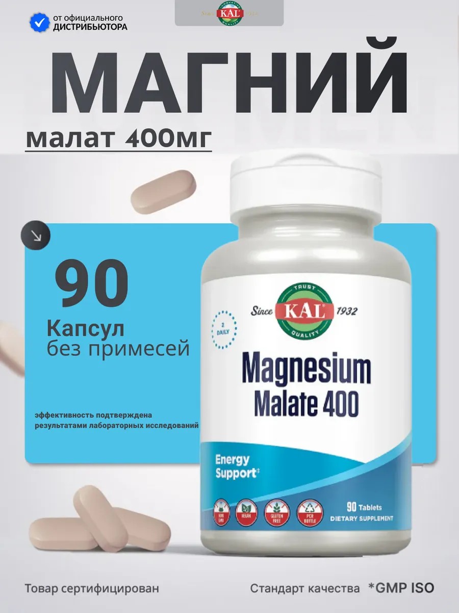 Magnesium malate от KAL — это высококачественный пищевой supplement, который может помочь поддержать ваше общее здоровье и благополучие. Каждая таблетка содержит 400 мг магния малата, формы магния, которая хорошо усваивается организмом. Магний играет важную роль во многих bodily functions, включая мышечную функцию, выработку энергии и здоровье нервной системы. Magnesium malate может быть особенно полезен для людей, которые испытывают усталость, мышечные спазмы или стресс. Добавьте Magnesium malate в свой ежедневный режим, чтобы поддержать свое здоровье и самочувствие.