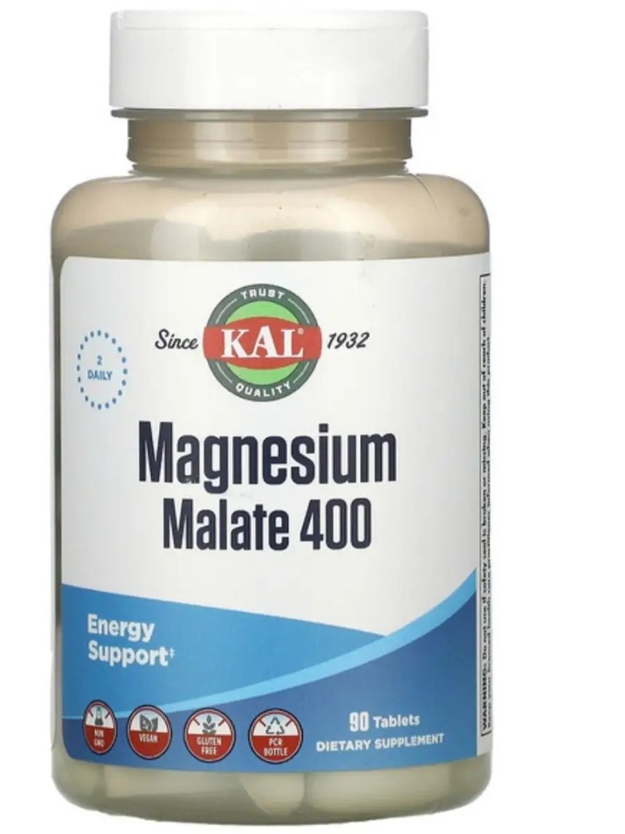 Используется для профилактики ряда заболеваний нервной, дыхательной, сердечно-сосудистой, кровеносной, эндокринной, репродуктивной и костной систем.Таблетки KAL Magnesium Malate, 212 г, 400 мг, 90 шт.Назначение: дефицит магния, для улучшения деятельности сердечно-сосудистой системы, нарушение сна, нормализация сна, повышение устойчивости организма к стрессу, расслабление мышц и предупреждение судорог, стресс, судороги, улучшение работы сердца.