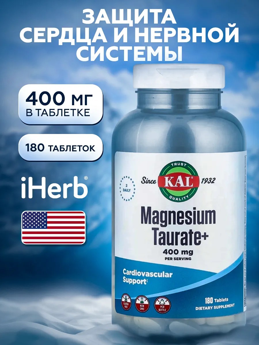 KAL Magnesium Taurate+ (400 мг, 180 таблеток) – двойная защита сердца и нервной системы.