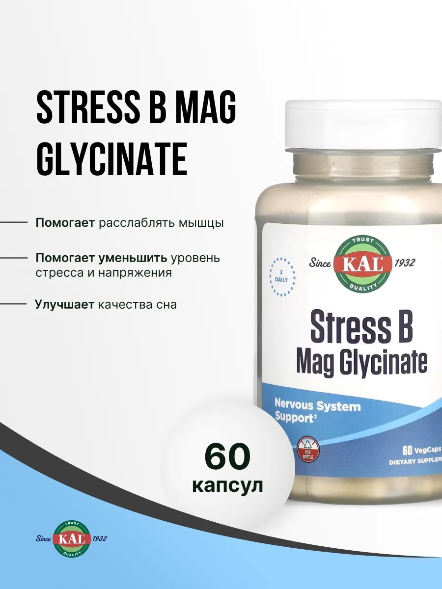 KAL Stress B Mag Glycinate is a supplement containing magnesium glycinate, which helps manage stress and supports overall mental and emotional well-being.