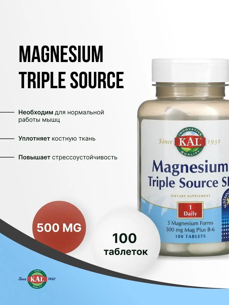 KAL KAL, Тройной источник магния 500 мг, 100 таблеток
