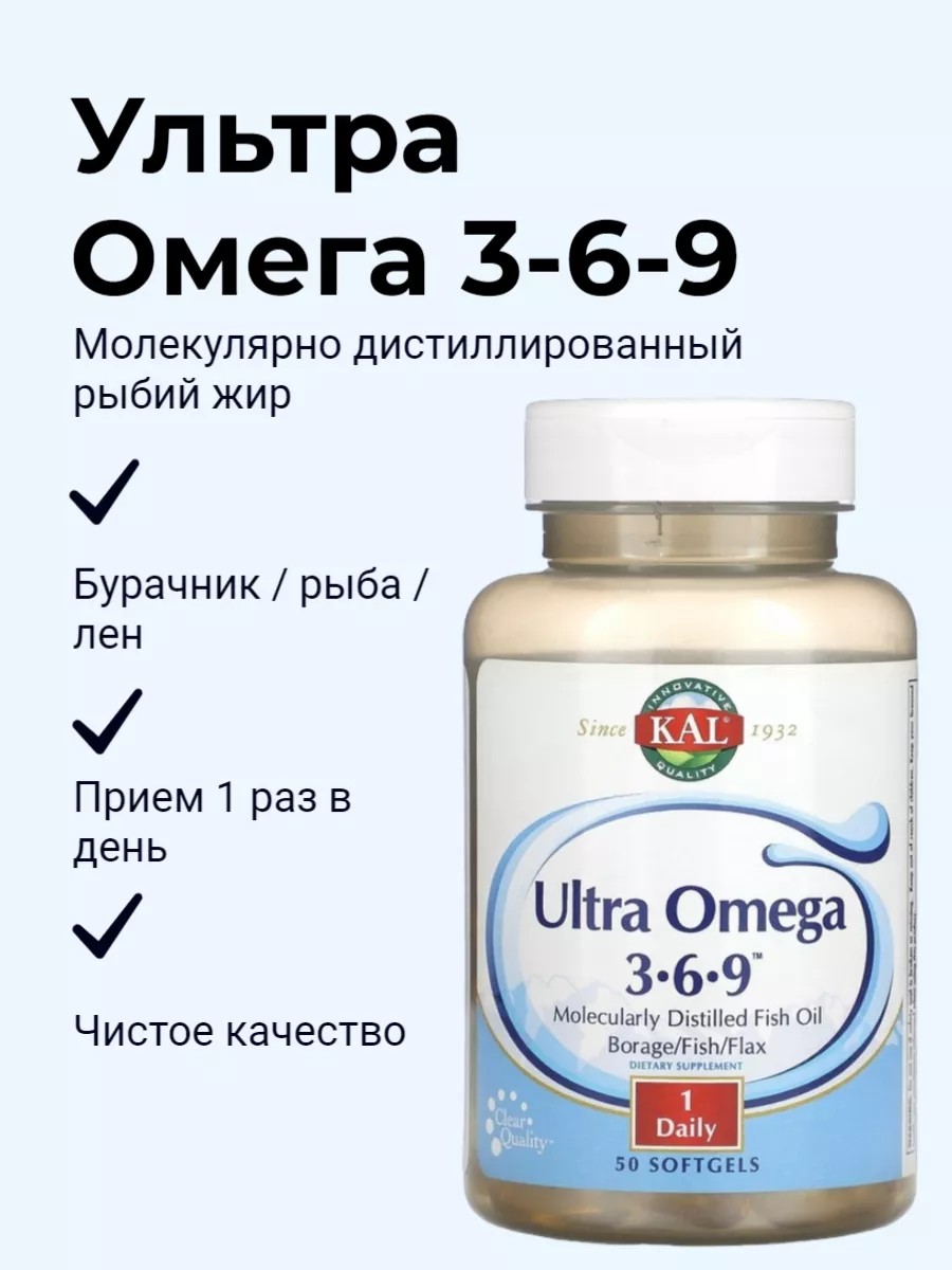 KAL Ультра Омега 3-6-9, Ultra Omega 3-6-9, 50 капсул