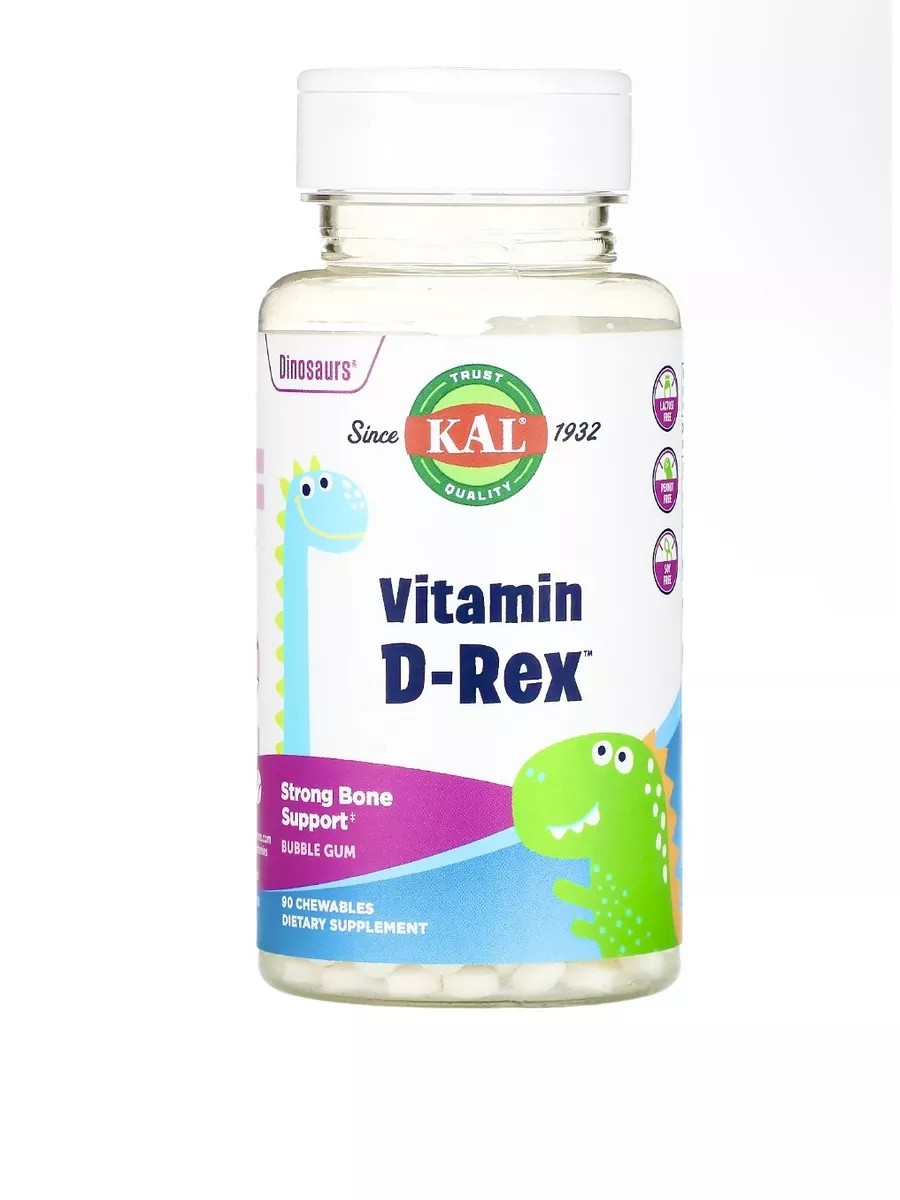 Жевательные таблетки Vitamin D-Rex - это интересный способ для детей получить витамин Д, необходимый в их ежедневном рационе, особенно в пасмурные месяцы. Иногда его называют Солнечным витамином, поскольку он естественным образом вырабатывается кожей под воздействием солнца. Это незаменимое питательное вещество для укрепления костей и роста скелета. Также витамин Д3 играет важную роль в укреплении иммунитета и поддержке организма против гриппа и простуды. Рекомендации по применению: принимать по 1 жевательной таблетке один раз в день до 12 часов дня. Состав: 400 МЕ витамина Д3.