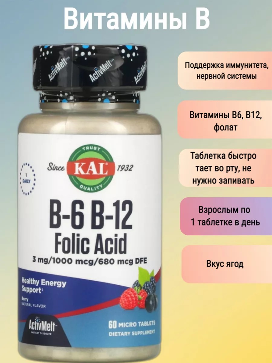KAL Витамины B-6 B-12 фолиевая кислота 60 таблеток