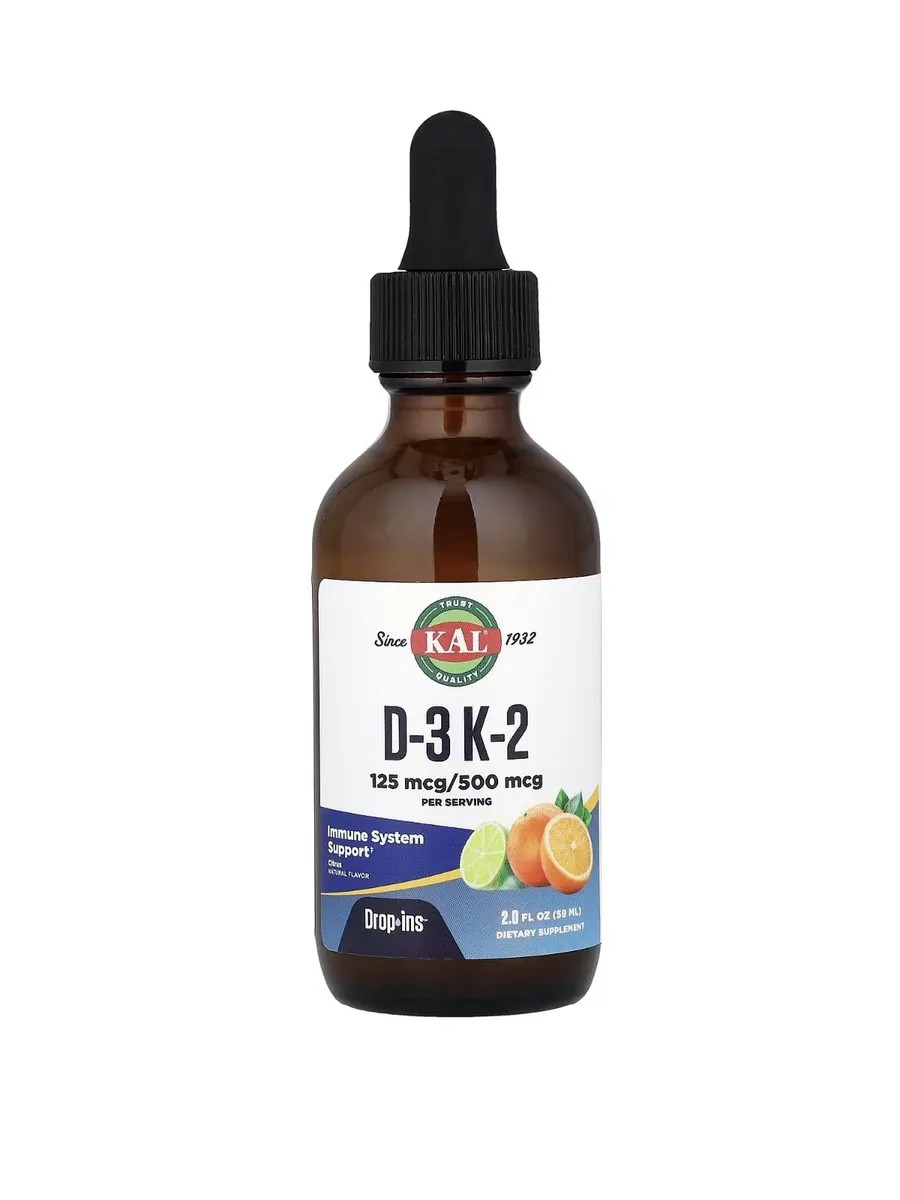 KAL Витамины D3 и K2 в каплях, с цитрусовым вкусом, 59 мл