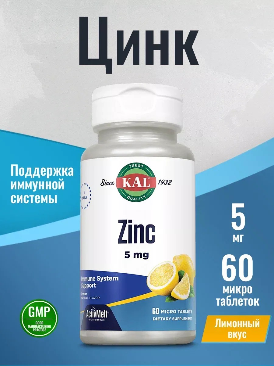 | Package contents | Zinc, lemon-flavored, 5 mg 60 tablets, Kal - 1 can |