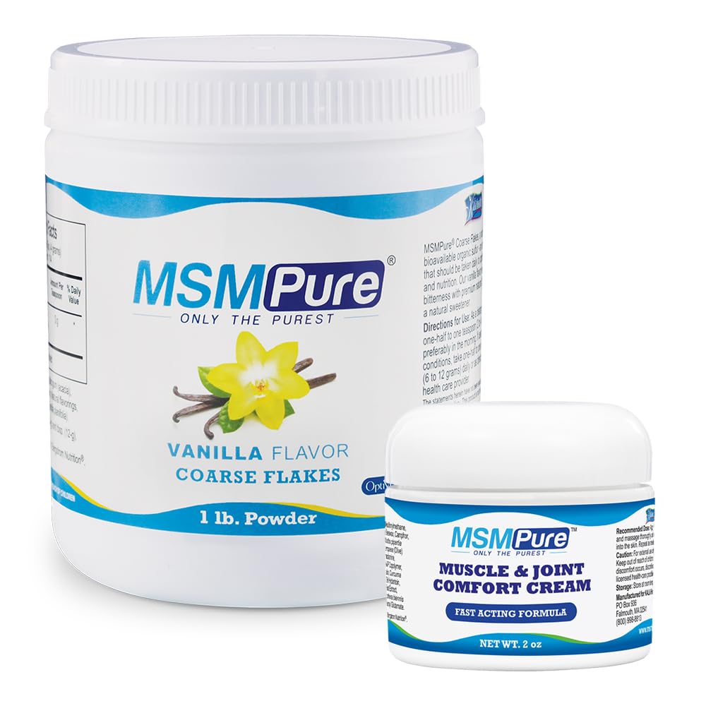 MSM Cream: Heating Sensation: After absorption, experience a gentle warming effect that enhances the feeling of comfort. MSM Cream: Fast-Acting Formula: Absorbs quickly into the skin, offering effective relief in no time. MSM Gel: Max Strength MSM: Formulated with a high potency of MSM, known for its soothing and revitalizing properties for the skin, joints, and muscles. MSM Powder: Supports Joint Health Mobility: MSM helps maintain joint function and mobility, promoting collagen production and supporting flexibility and overall joint comfort. MSM Powder: Smooth Vanilla Flavor: A creamy, mellow vanilla taste that softens the natural bitterness of MSM, providing a smooth, indulgent experience that makes taking your supplement feel like a treat.