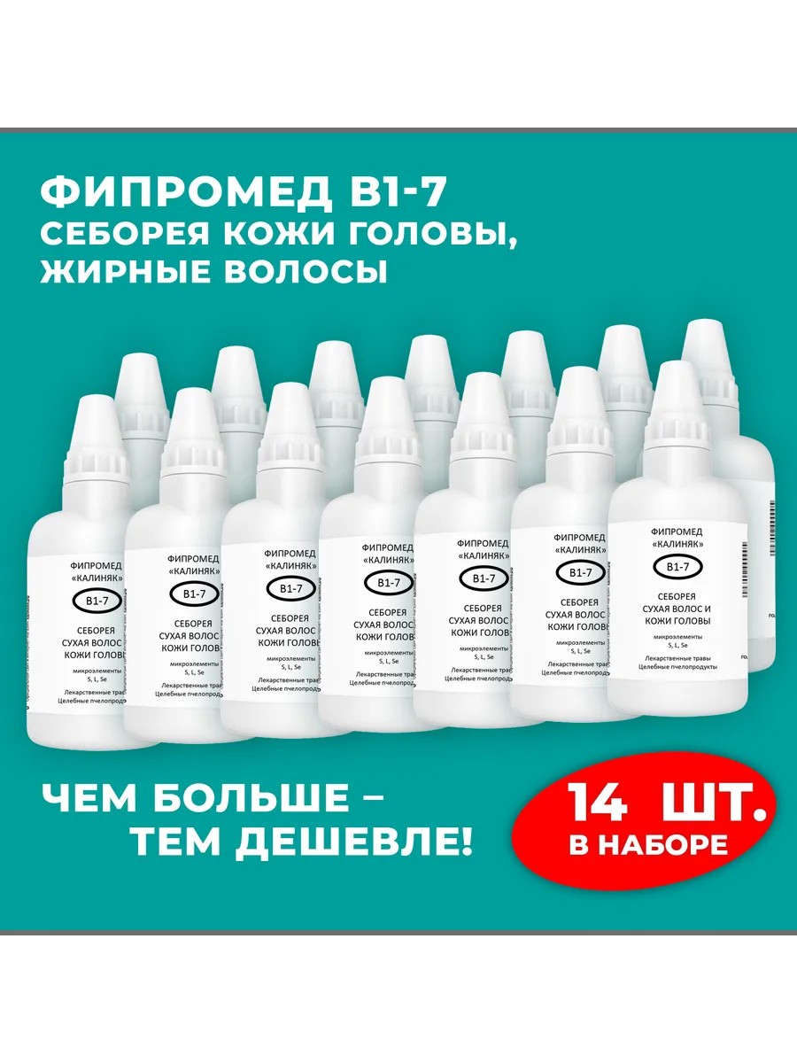 | Полное наименование товара | Фипромед Калиняк В1-7 Себорея сухая волос и кожи головы, 14 шт. по 50 мл |