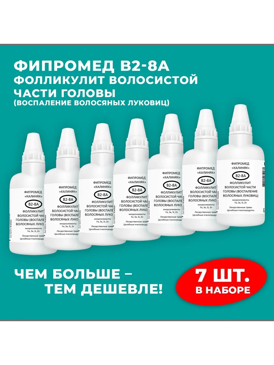| Полное наименование товара | Фипромед Калиняк В2-8А Фолликулит волосистой части головы (воспаление волосяных луковиц), 7 шт. по 50 мл |