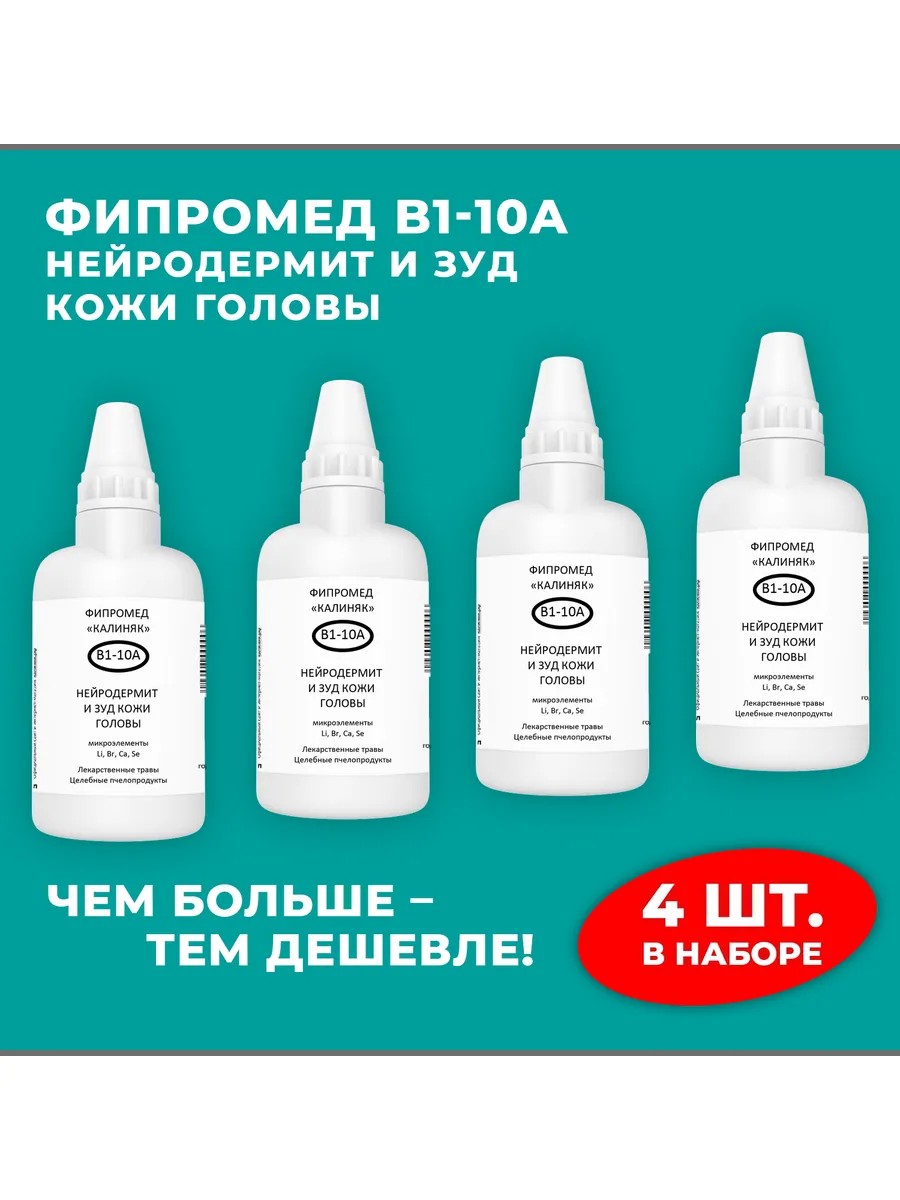 | Полное наименование товара | Фипромед Калиняк В1-10А Нейродермит и зуд кожи головы, 4 шт. по 50 мл |