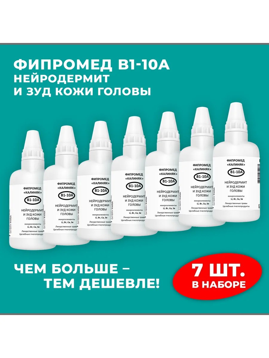 | Полное наименование товара | Фипромед Калиняк В1-10А Нейродермит и зуд кожи головы, 7 шт. по 50 мл |