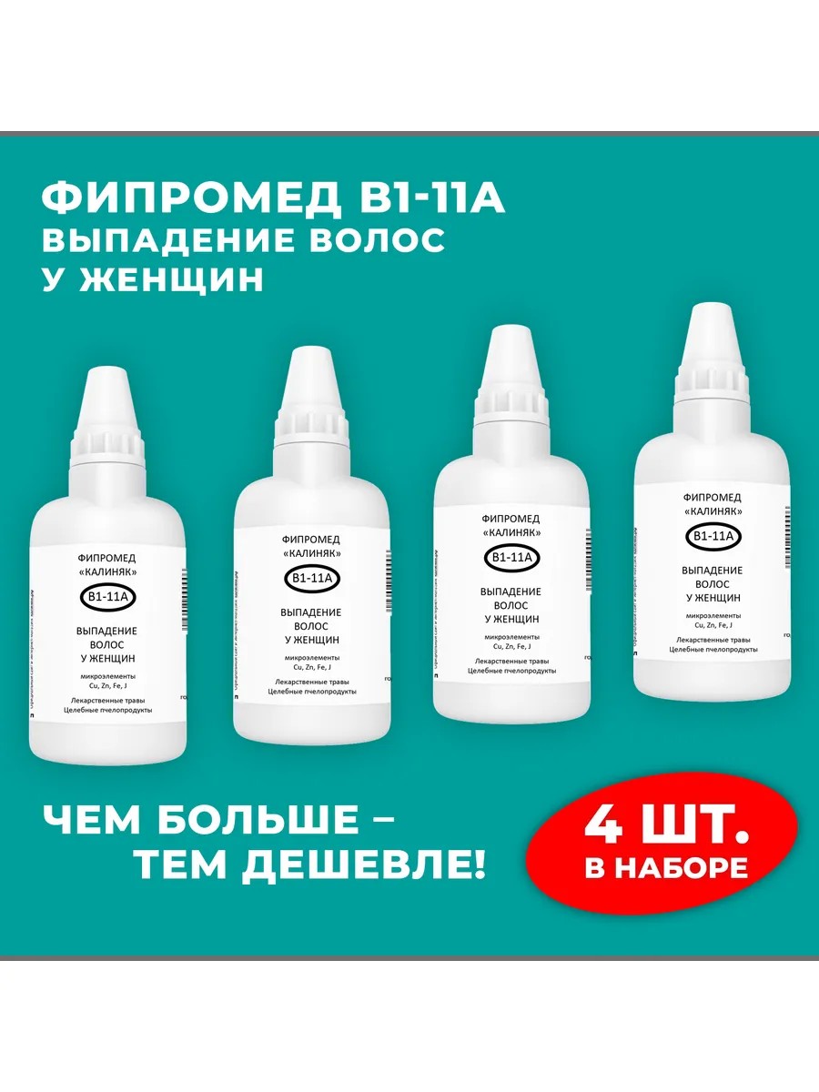 | Полное наименование товара | Фипромед Калиняк В1-11А Выпадение волос у женщин, 4 шт. по 50 мл |