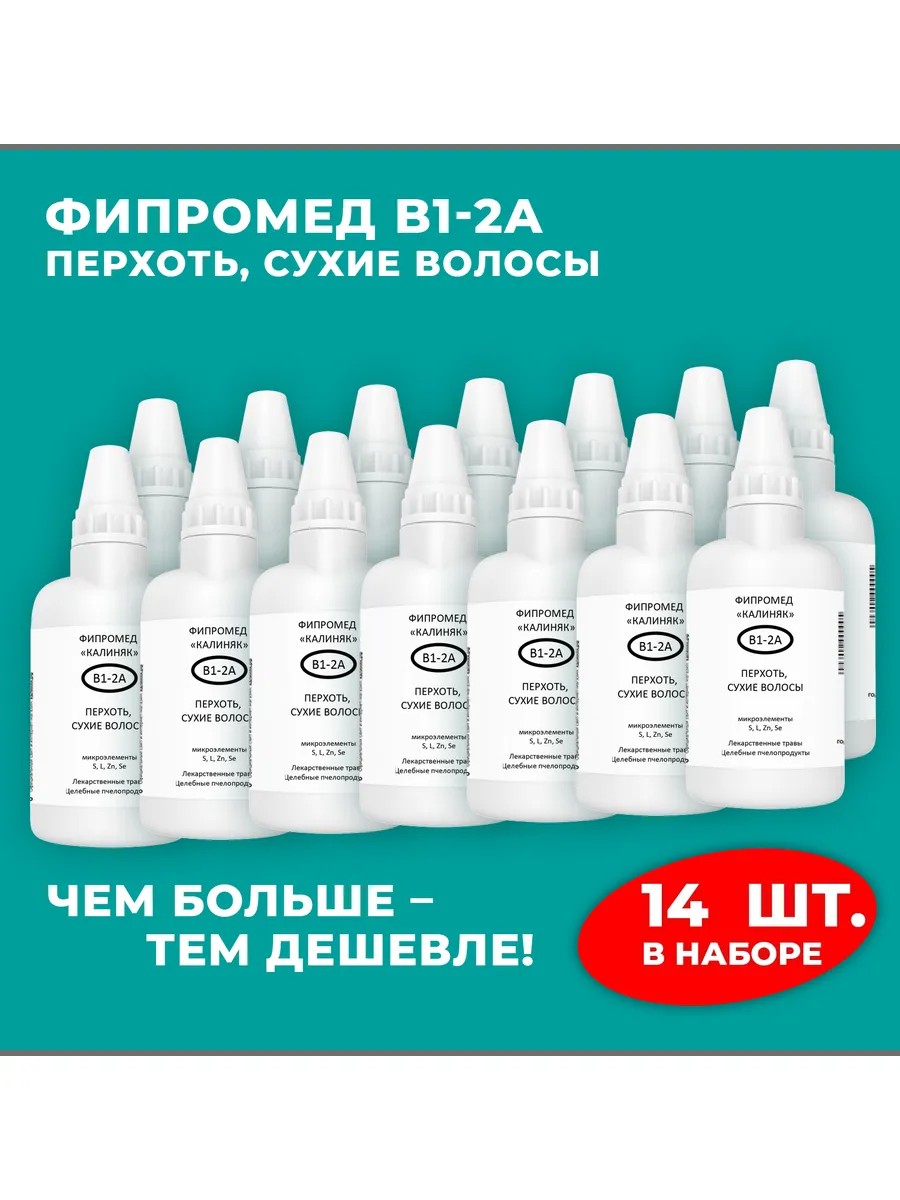| Полное наименование товара | Фипромед Калиняк В1-2А Перхоть, Сухие волосы, 14 шт. по 50 мл |