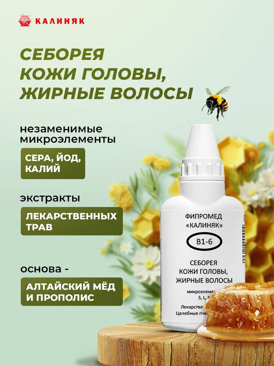 Фитпромед Калиняк В1-6 действует на двух фронтах: устраняет себорею и контролирует жирность волос.