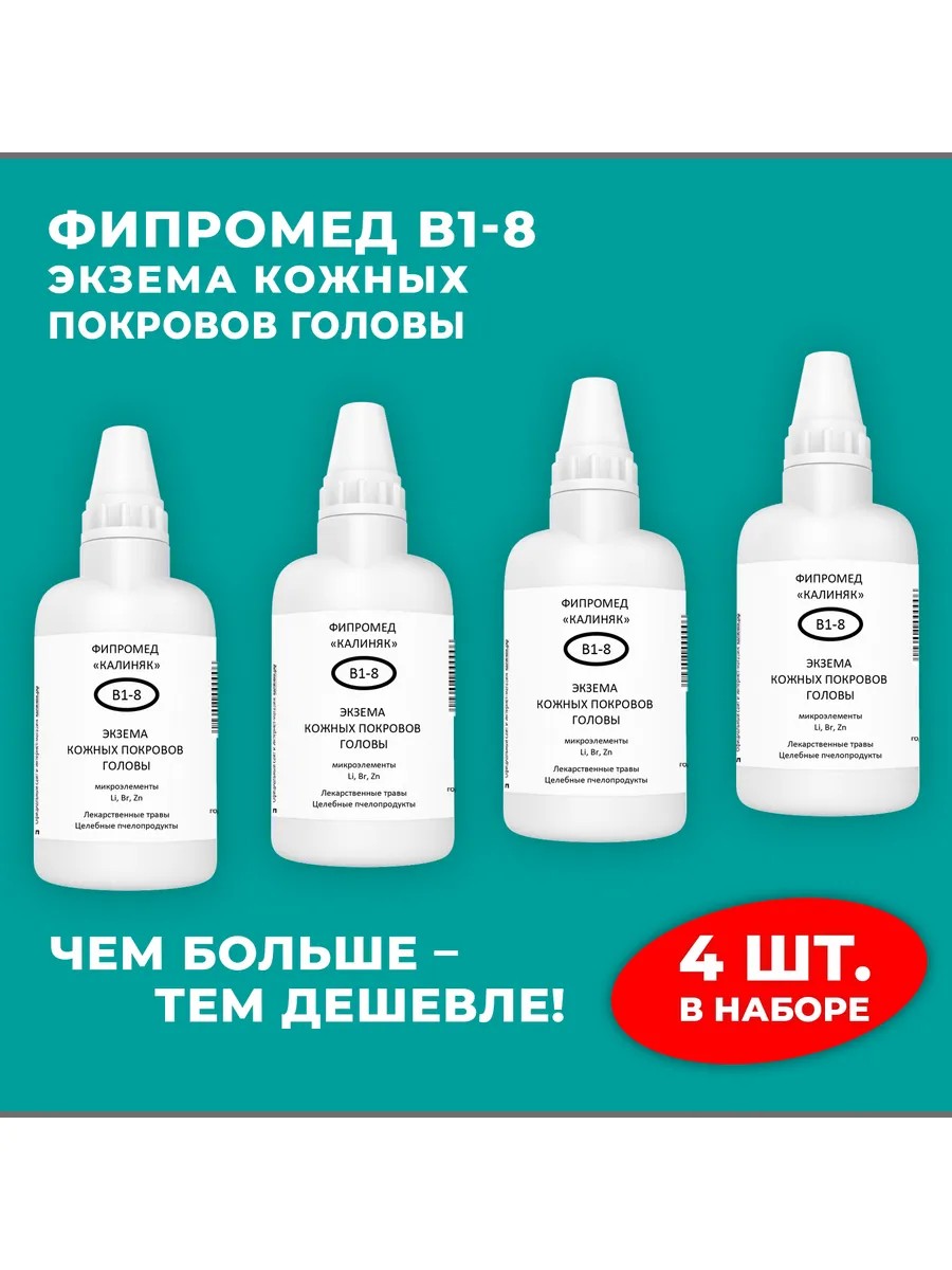 | Полное наименование товара | Фипромед Калиняк В1-8 Экзема кожных покровов головы, 4 шт. по 50 мл |